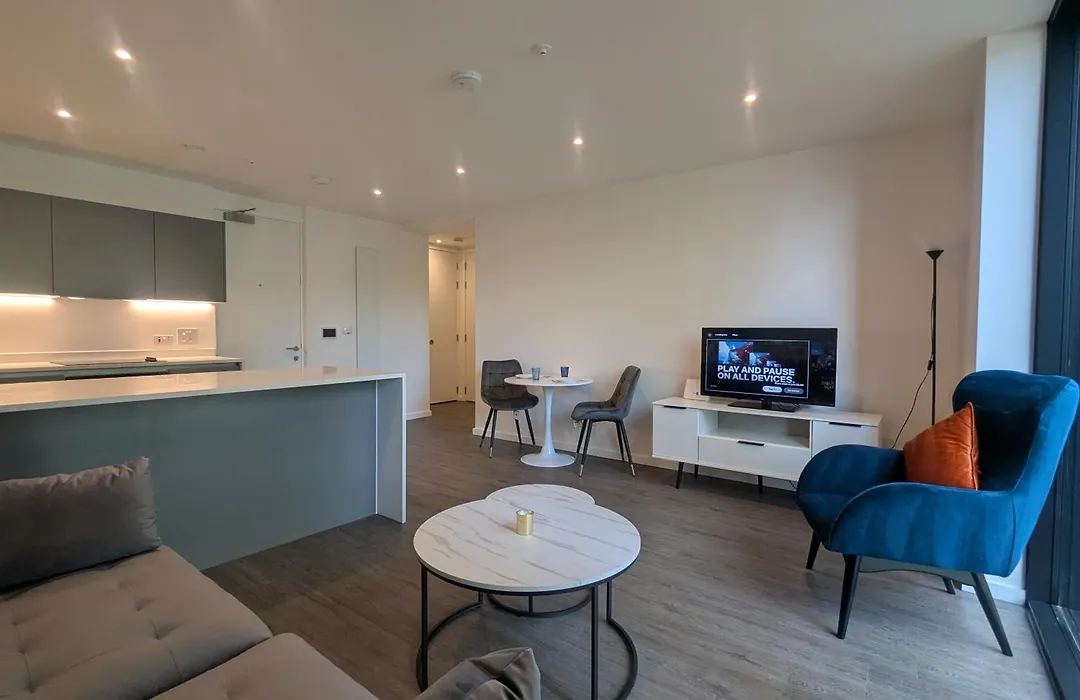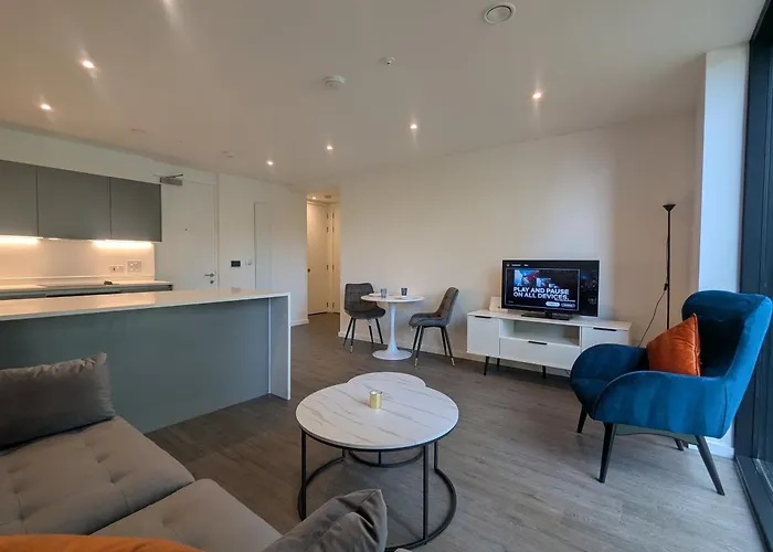 Disfruta de tus vacaciones en Mánchester en el New 1Br Apartment Gym Roof Terrace Lounge Mánchester. Ideal para quienes buscan una experiencia auténtica, está situado a 12 minutos a pie de la Biblioteca de Chetham y a una distancia de 4 km del Estadio de Críquet Old Trafford.